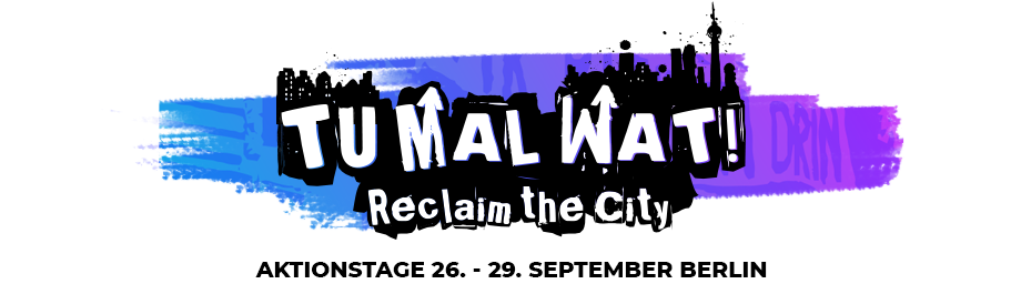 Doch finden wir zwischen Luxusbauten, Malls und privatisiertem Raum auch noch widerständige Orte und Momente. Ein Bündnis verschiedener Gruppen will mit den „Tu mal wat“-Aktionstagen die bestehenden wohnungspolitischen Kämpfe weiter zuspitzen und ihre Vielfältigkeit aufzeigen. Die Aktionstage sollen öffentlich beworbene Veranstaltungen wie Diskussionsrunden, Workshops, Filmabende und Solipartys mit handfester Praxis kombinieren. Thematisch geht es um die Enteignung, die Aneignung, das Sich-Widersetzen und den Erhalt von Räumen und Orten, in Theorie und Praxis.