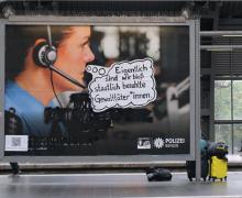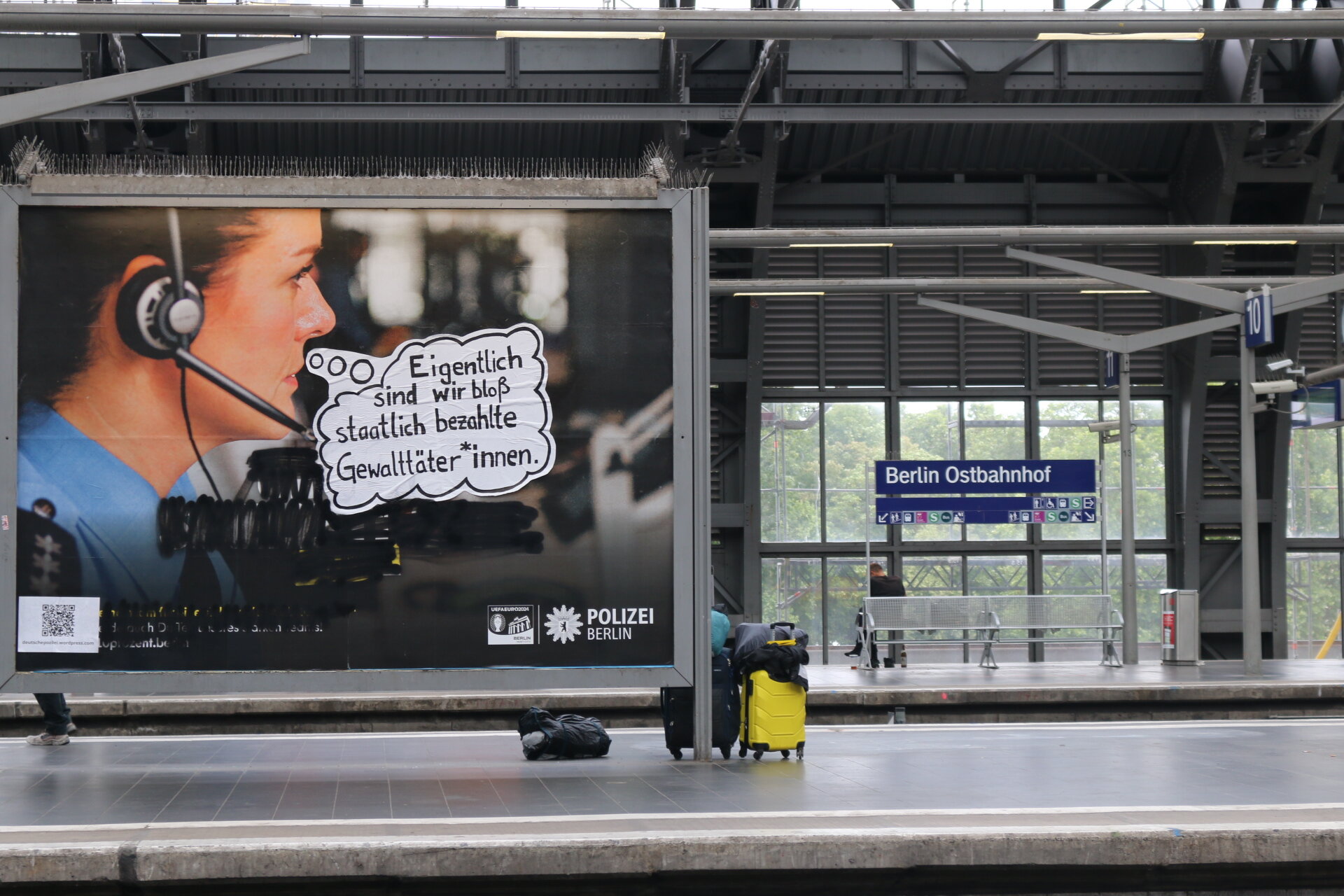 Konkret geht es bei der Anklage um Werbung der Polizei mit großen Postern in Bahnhöfen. Auf die Werbeposter sollen Chaoten Sprechblasen aus Papier gekleistert haben. Die auf den Postern abgebildete freundliche Polizistin sagte dank der Sprechblase erstaunlich selbstkritisch: "...eigentlich sind wir nur staatlich bezahlte Gewalttäter“.