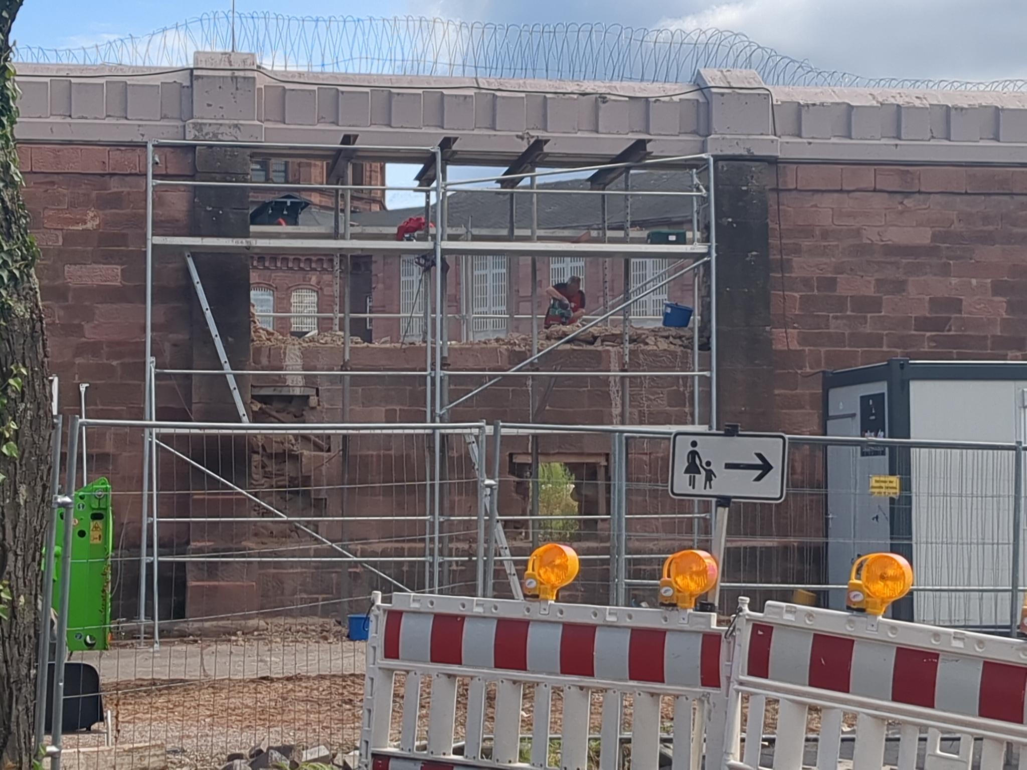 Das Land Baden-Württemberg plant umfangreiche Baumaßnahmen in der Justizvollzugsanstalt Freiburg. Um für die Großbaustelle eine eigene Zufahrt zu schaffen, wird aktuell ein Teil der Außenmauer eingerissen.