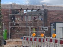 Da die Baumaßnahmen während des laufenden Betriebs erfolgen, haben jene Gefangenen, deren Zellen in Richtung der Baustelle weisen, werktags eine erhebliche Staub- und Lärmbelastung zu ertragen- immerhin können sie aber verfolgen, was sich da vor ihrer Zelle tut (wenn sie auf einen Stuhl steigen, um aus dem in 2m Höhe befindlichen Fenster, hinaus zu lugen).