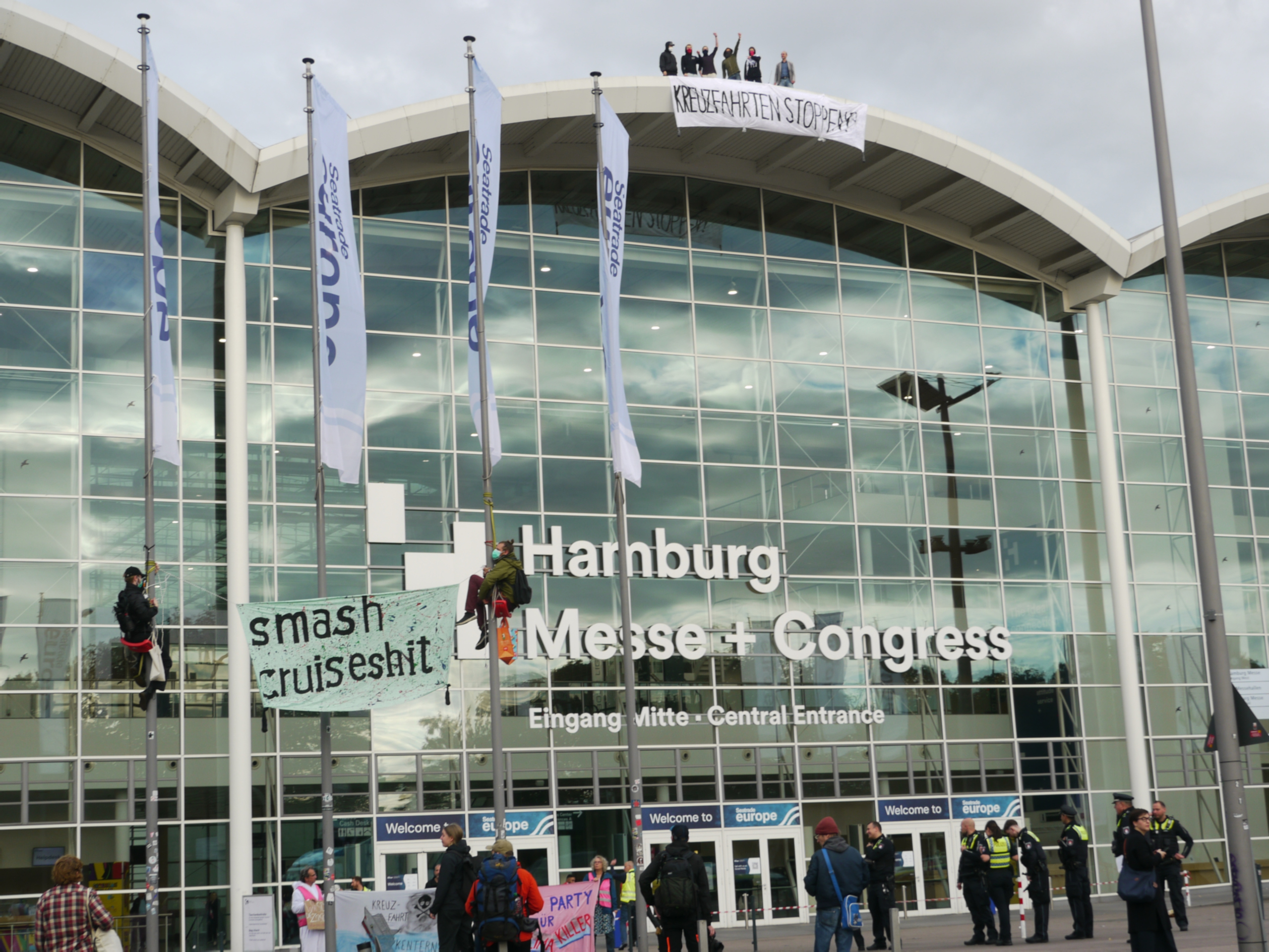 Der Protest der Aktivist*innen richtet sich auch an die Teilnehmenden der am Wochenende stattfindenden Hamburg Cruise Days. Laut eigenen Aussagen das "größte Kreuzfahrtfestival Europas". Von Freitag bis Sonntag werden bis zu 600.000 Besucher*innen erwartet, denen acht verschiedene Kreuzfahrtschiffe präsentiert werden. Dazu gibt es ein volksfestähnliches Programm.