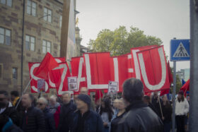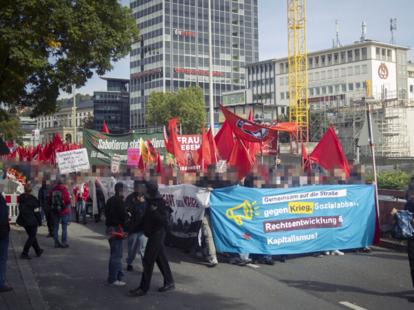 Am 03. Oktober fanden auf Initiative von „Nie wieder Krieg“ bundesweite Demonstrationen in Berlin und Stuttgart gegen Krieg, die stetige Militarisierung der Gesellschaft unter dem Stichwort „Kriegstüchtigkeit“ und die damit verbundenen Auswirkungen statt. Die Demonstration in Stuttgart organisierte die Friedensvernetzung Südwest. Zum antikapitalistischen Block riefen 30 Organisationen auf Initiative der Organisierten Autonomie unter dem Motto „Gemeinsam auf die Straße gegen Krieg, Sozialabbau, Rechtsentwicklung und Kapitalismus“ auf. Ziel war es, gemeinsam ein starkes Zeichen gegen „Kriegstüchtigkeit“ und die herrschenden Verhältnisse zu setzen. Denn klar ist: Der Kapitalismus bietet keine Lösungen – im Gegenteil, er ist Ursache von Krieg, Ausbeutung und Krise.