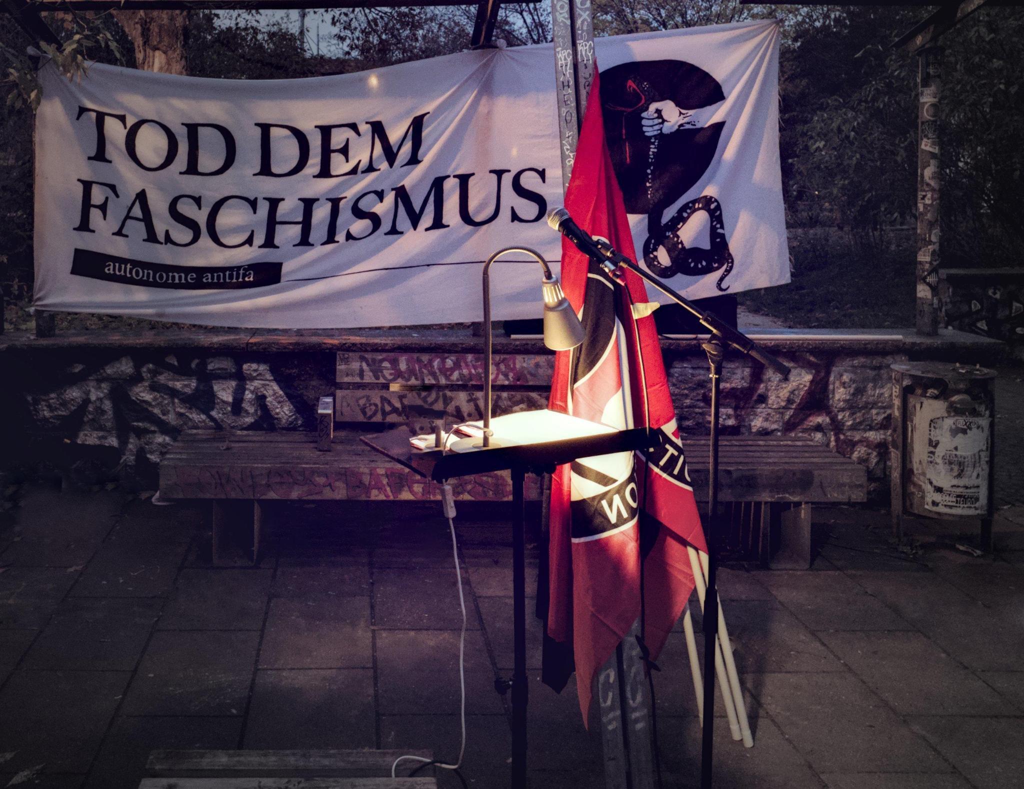 Auch in diesem Jahr hatten wir für den 9. November zu einer antifaschistischen Kundgebung in Erinnerung an das Novemberpogrom 1938 aufgerufen. An der Kundgebung nahmen ca. 150 Leute teil. Eröffnet wurde die Kundgebung mit einem Redebeitrag von uns, der sich mit dem Novemberpogrom in Leipzig und dem Schicksal der Familie Joske beschäftigte. Der zweite Beitrag von disput kritisierte, dass die radikale Linke hinter einer antideutschen Kritik von Staat, Kapital und Antisemitismus zurückfalle. Im dritten Beitrag einer Genossin aus der translib wurde beleuchtet, wie gegenwärtig Antisemitismus von der Politik verhandelt wird: nicht um Jüdinnen:Juden zu schützen, sondern um „die eigene politische Heimat zu markieren“. Der vierte Beitrag kam vom Bündnis Reclaim Antifa und thematisierte, dass Antisemitismus eher mit einem brüchigen Tabu belegt und von einer oberflächlichen Erinnerungskultur begleitet ist, statt ernsthaft aufgearbeitet zu werden. Der letzte Beitrag von einigen Genossen von alea beschäftigte sich mit dem Verhältnis des gegenwärtigen Antizionismus und Antisemitismus. Beendet wurde die Kundgebung mit dem ersten Satz von Dmitri Dmitrijewitsch Schostakowitschs 13. Sinfonie, dessen Grundlage das Gedicht „Babi Jar“ von Jewgeni Alexandrowitsch Jewtuschenko ist.