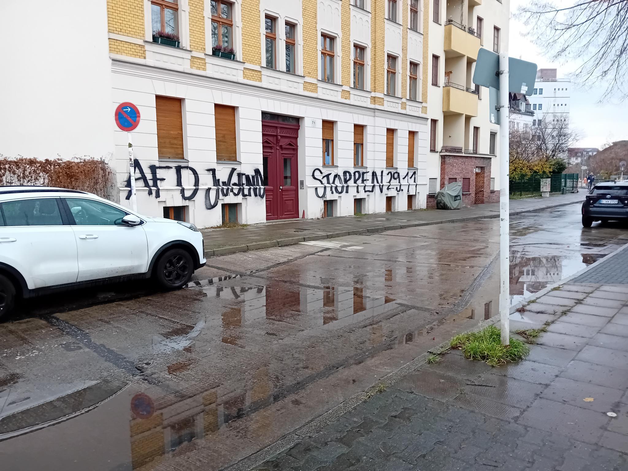 Fassade von Berliner-AfDler verschönert - Am 29.11. alle nach Gießen, Faschos blockieren!