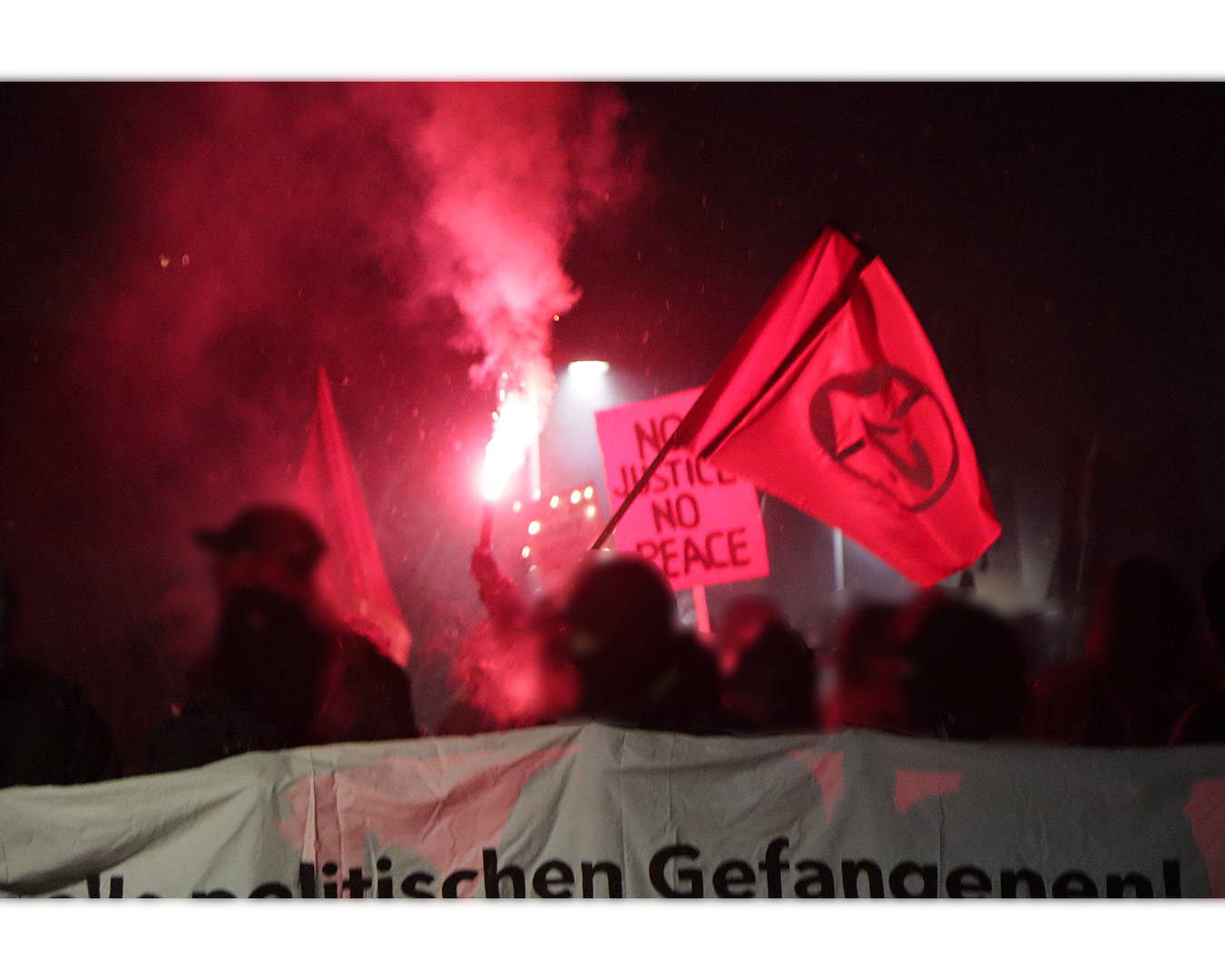 Im Rahmen der Silvesteraktivitäten 2025 haben rund 90Aktivist:innen und Revolutionär:innen aus Süddeutschland den Knast in Stuttgart Stammheim mit einer unangemeldeten Demonstration besucht. Mit Parolen, Schildern, Bannern zeigten sie allen politischen und sozialen Gefangenen ihre Solidarität. Thematisch wurden dabei Daniela Klette, die kurdische sowie die palästinasolidarische Bewegung - allen voran die Ulm5 und die kriminalisierten Antifaschist:innen hervorgehoben.