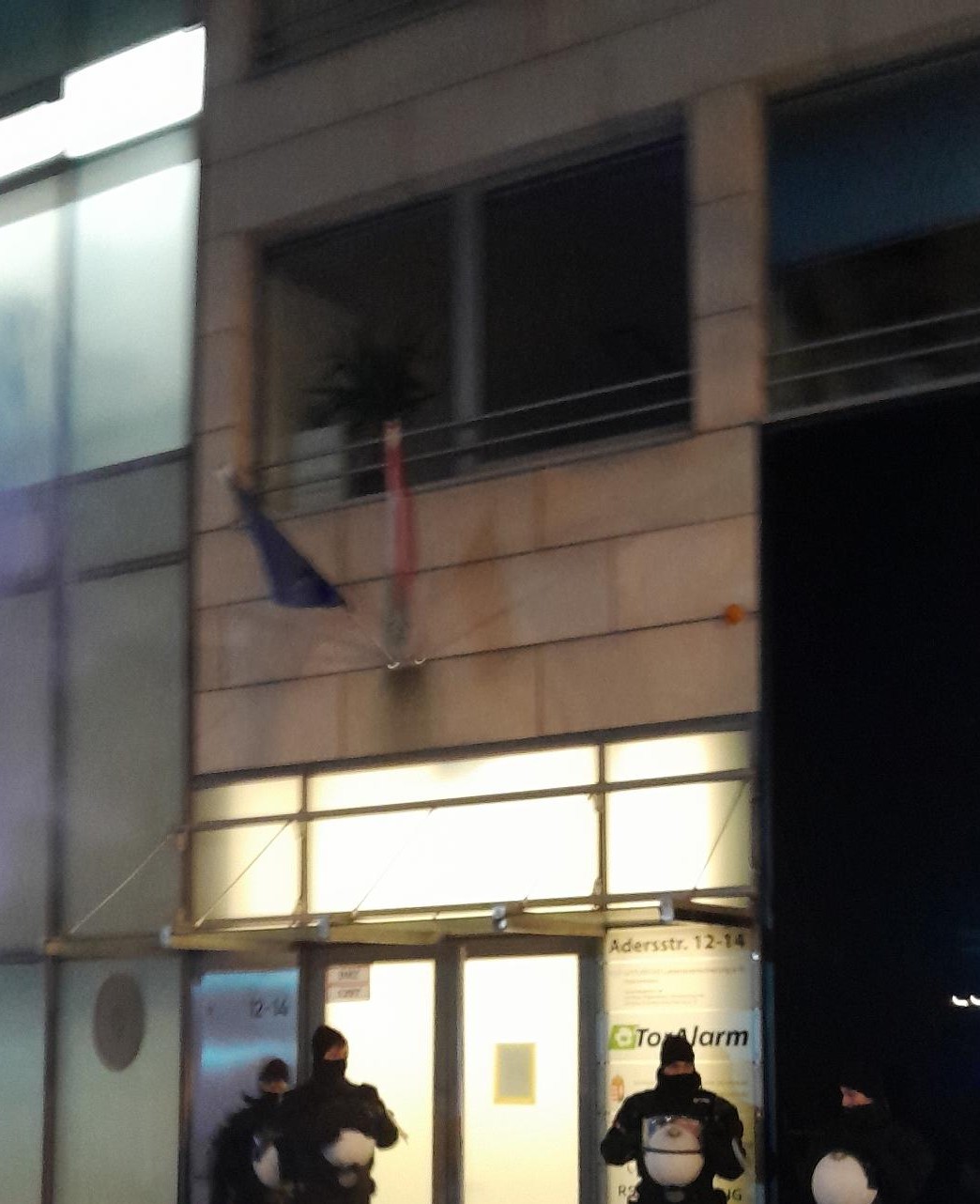 Hunderte #Antifa demonstrierten heute in Solidarität mit den Angeklagten im Budapest Verfahren #Düsseldorf. Vor dem ungarischen Konsulat wurde mit einen Rauchtopf Kraft und Solidarität zu #Maya und allen in Haft & im Untergrund gesendet. + Erklärung der Angeklagten