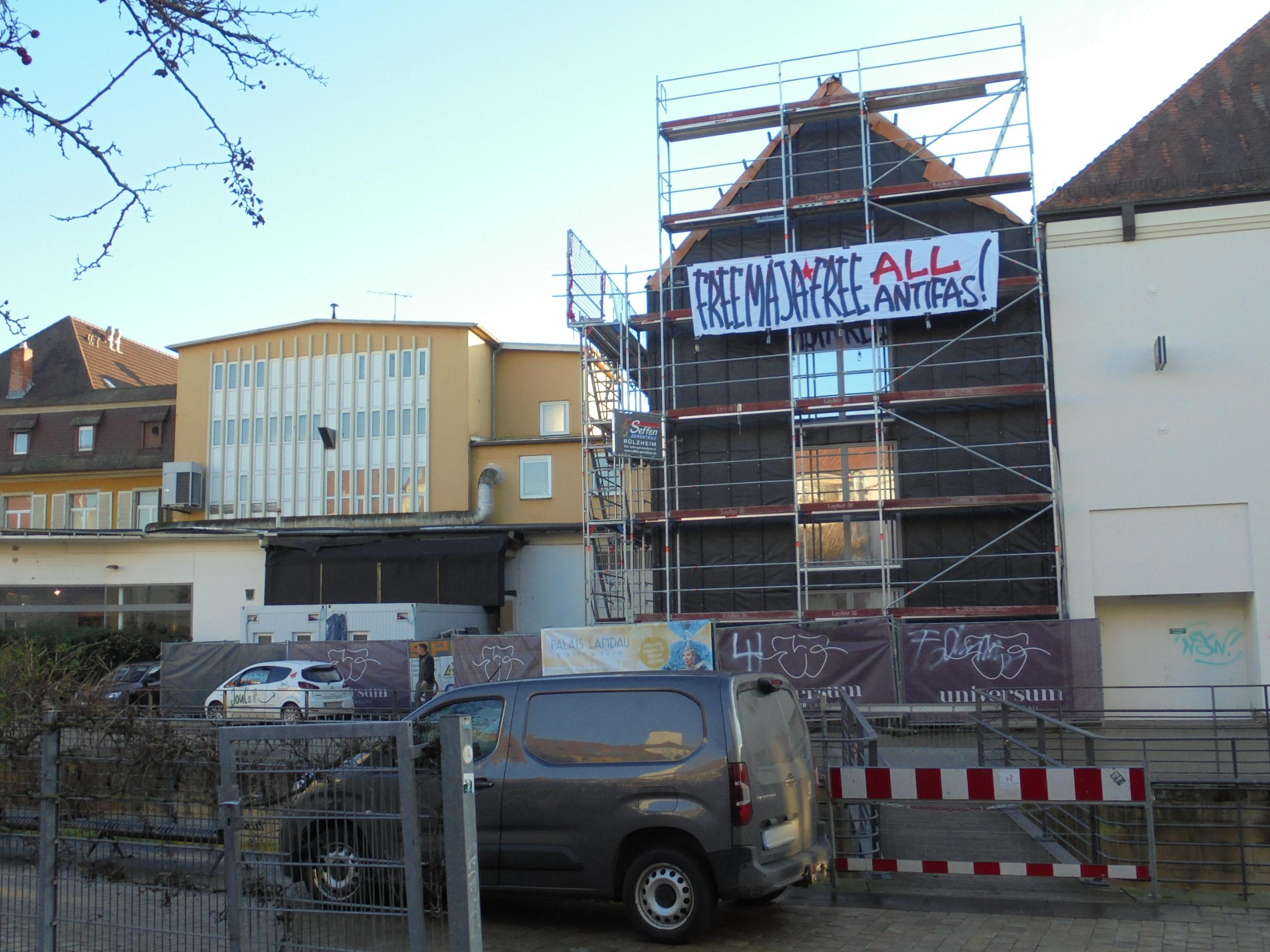 Am 15.01., den Aktionstag für Maja wurde auch in Landau ein Banner zur Solidaritätsbekundung gesichtet. In Mitten der Innenstadt wurde ein ca. 6m langes Banner mit der Aufschrift "Free Maja Free all Antifas" an einem Baugerüst befestigt. Zu dieser Aktion kam es am Tag der internationalen Solidarität mit Maja.