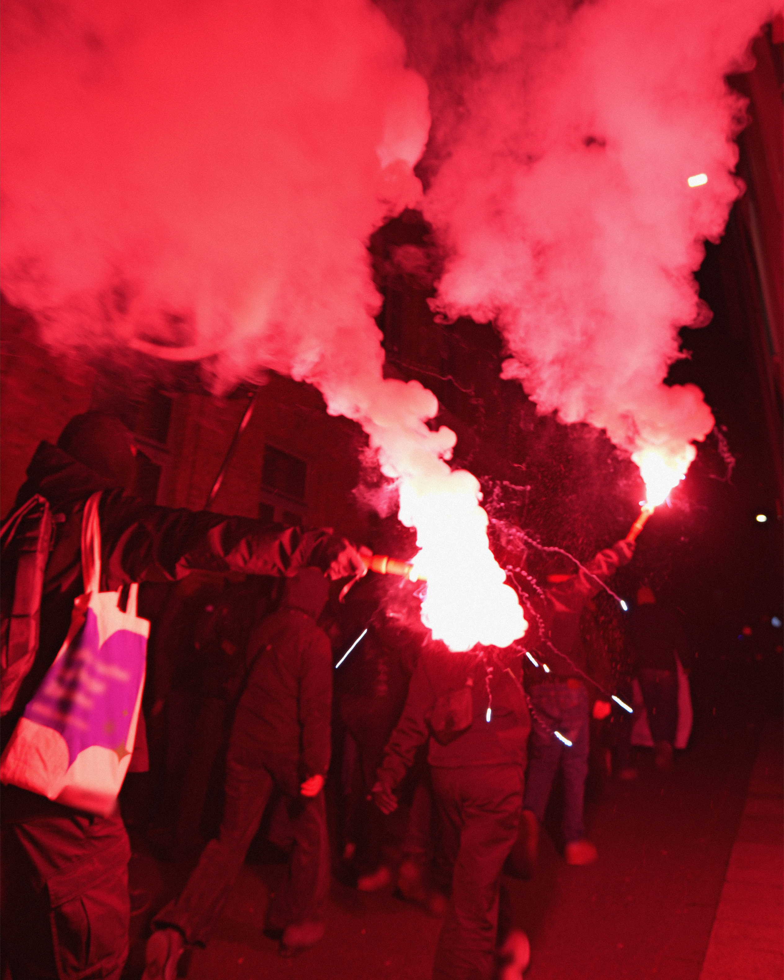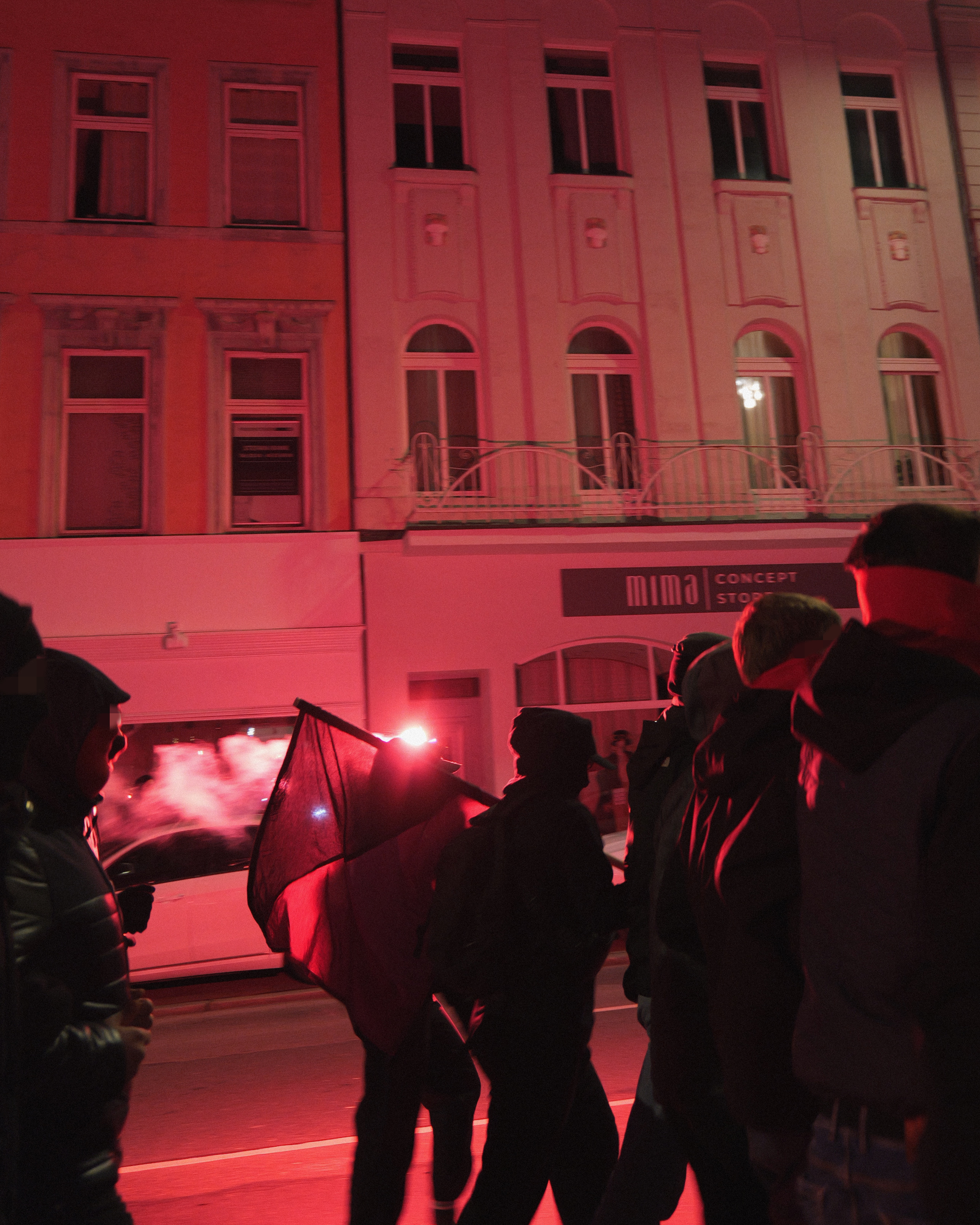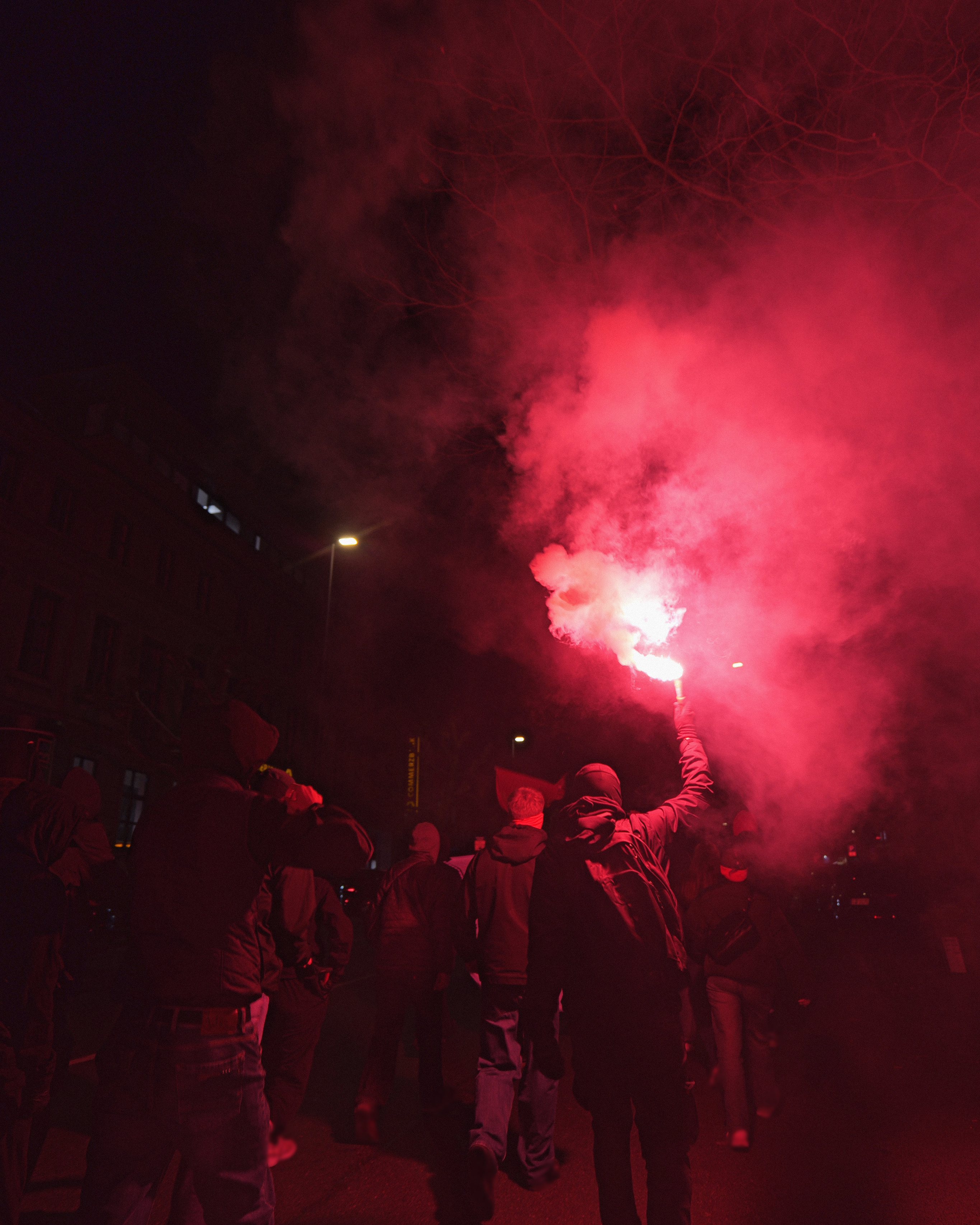 Im direkten Anschluss zu der angemeldeten Demonstration in Aachen am 23.01 mit über 1000 Menschen nahmen wir uns selbstbestimmt in der Innenstadt die Straße. Mit lauten Parolen und Pyrotechnik konnten wir kämpferisch für die Verteidigung der Frauenrevolution einstehen, obwohl die Polizei mit einem lächerlichen Großaufgebot versucht hat jede Militanz zu verhindern.