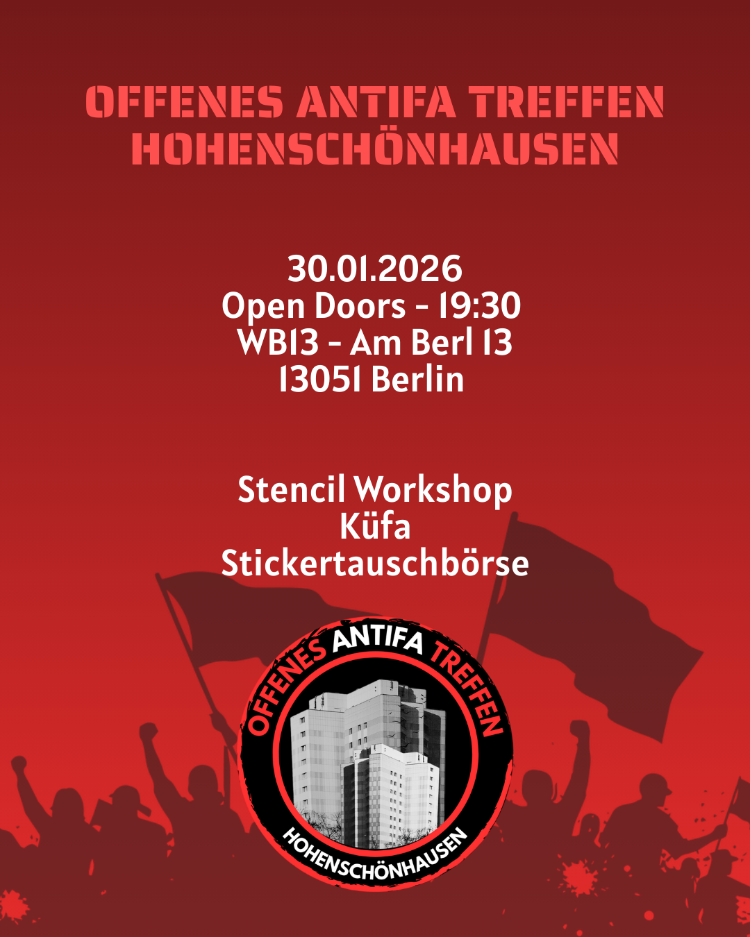 Offenes Antifa Treffen Hohenschönhausen am 30.01 // WB13 Am Berl 13, 13051 Berlin