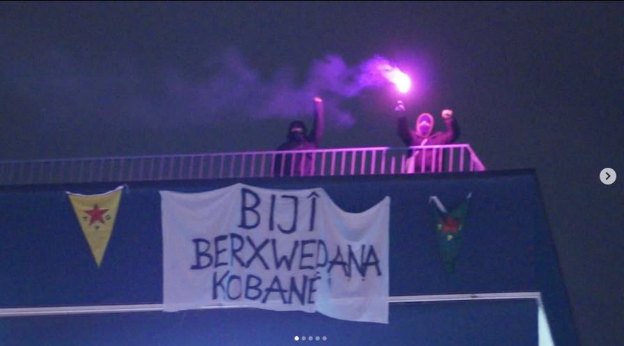 Mit dieser Aktion wollten sie Solidarität mit den mutigen Kämper*innen der YPJ und YPG zeigen, die Kobanê für 134 Tage verteidigt haben und dort für die Freiheit der Kurden und Kurdinnen ihr Leben ließen.