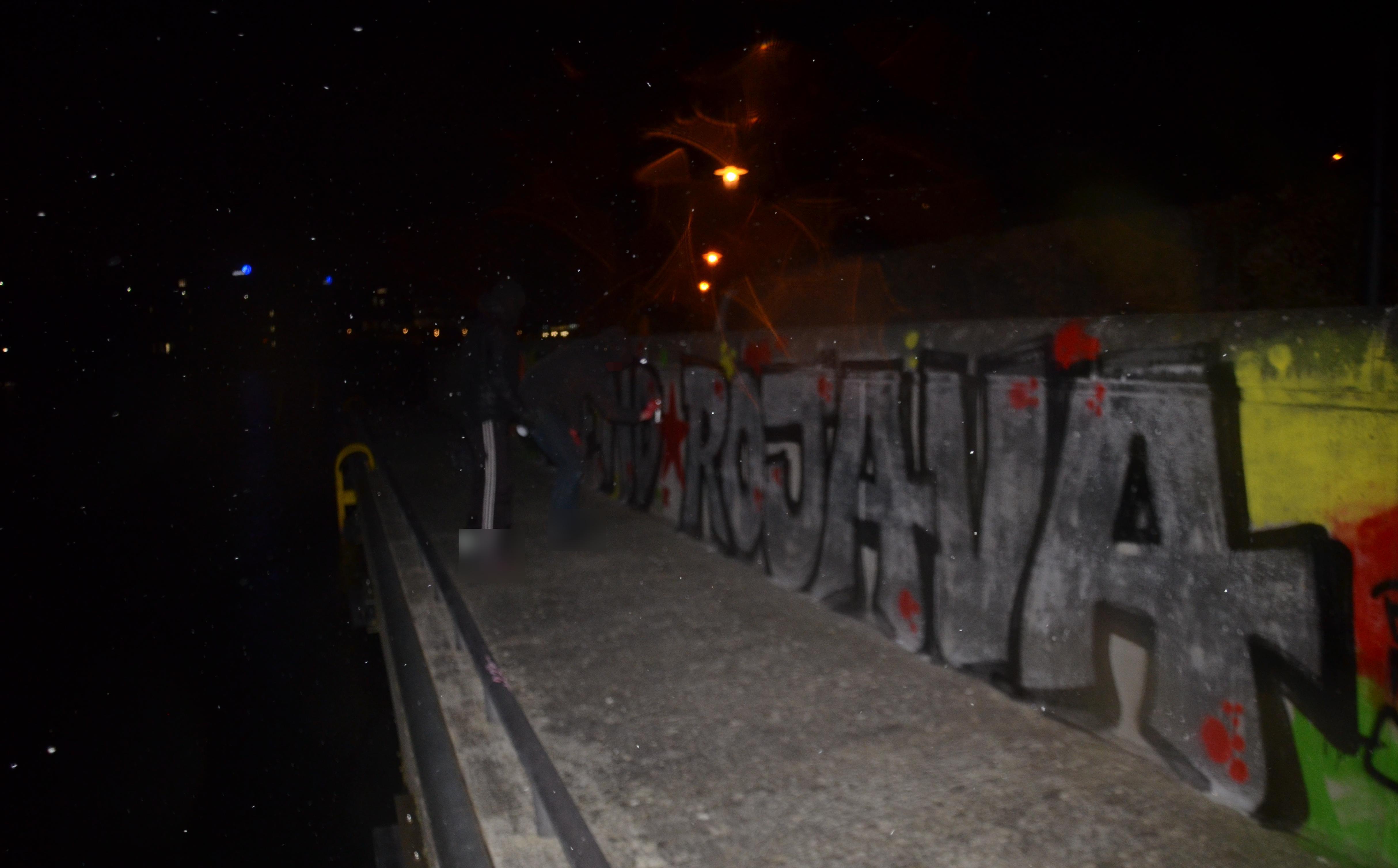 Rojava wird weiter von den Banden des HTS-Regimes und mit Unterstützung durch die Türkei, USA und EU angegriffen. In der Nacht auf den 26.01, den Kobane Aktionstag, haben wir deshalb mehrere Rojava Graffitis in Kiel gemalt.