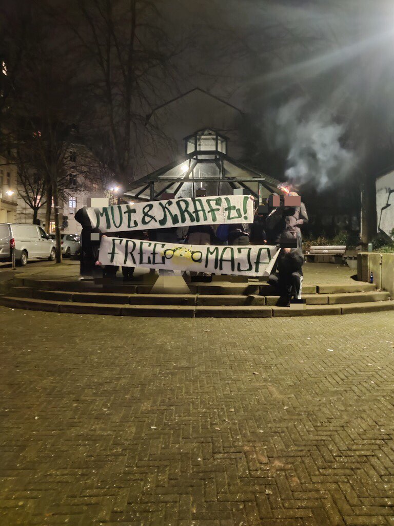 Heute wurde in Ungarn das Urteil gegen Maja gesprochen. Maja soll 8 Jahre hinter Gitter und Beton gesperrt werden. In einem politischen Prozess ohne Beweise wurde das Urteil in dem Fascho-Staat Ungarn gefällt. Was Maja vorgeworfen wird ist, an Angriffen auf militante Nazis beteiligt gewesen zu sein. Maja wird vorgeworfen, bei Nazi-Aktionen nicht weggesehen, sondern gehandelt zu haben. Wer Nazi-Aktionen ignoriert, macht sich mitschuldig. Antifaschismus ist notwendig!