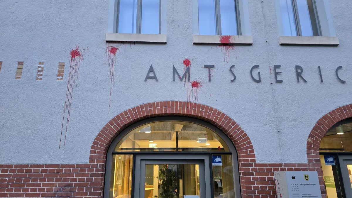 Solidarität mit Maja - Farbe auf Tübinger Gericht