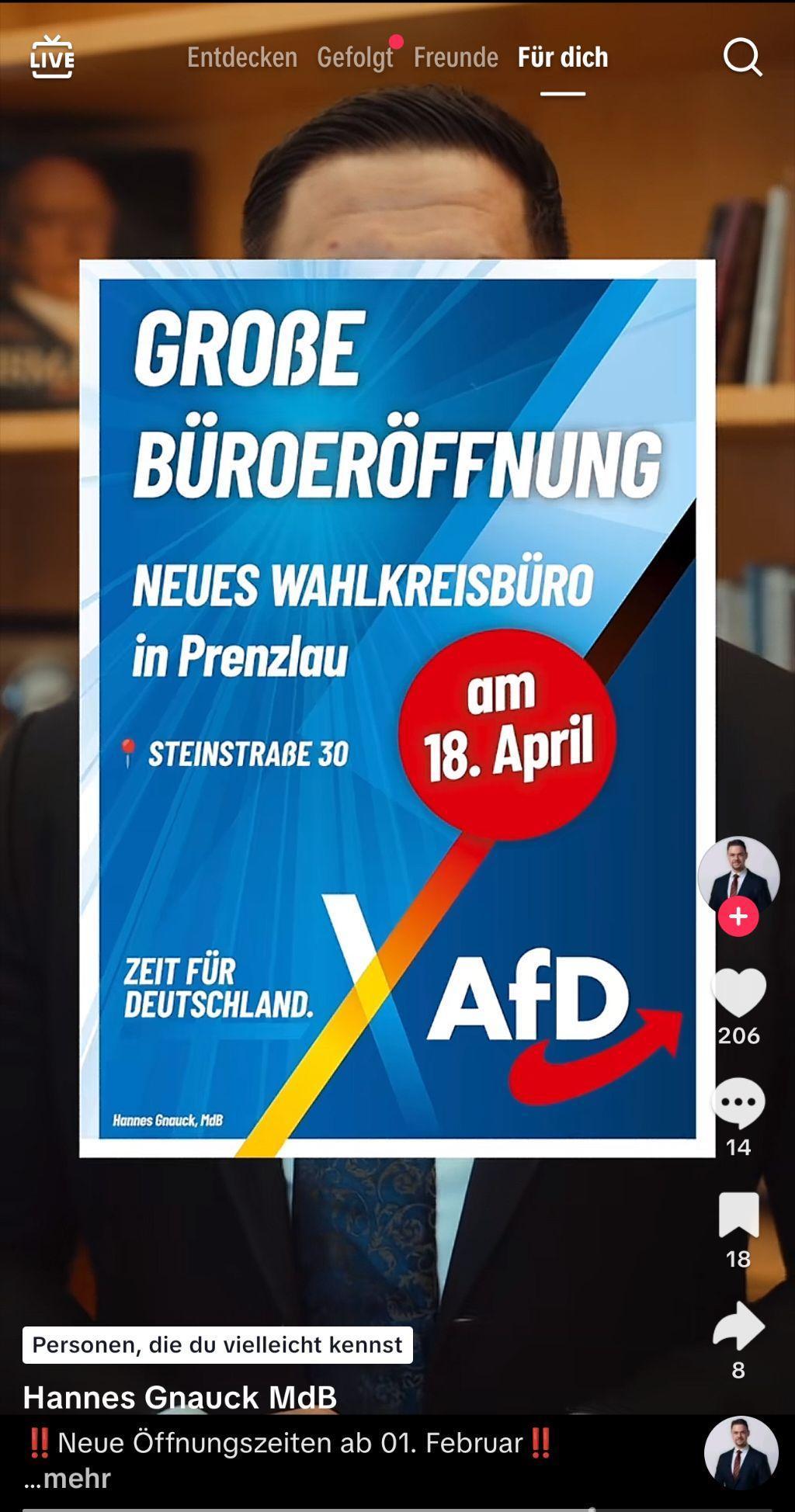 Auch ein Grund: Bei der Landratswahl im April 2026 will Felix Teichner im Gegenzug Landrat werden (5) und die CDUlerin Katrin Dörk an dieser Stelle beerben. Die Entscheidung den Parteitag in Prenzlau durchzuführen ist auch Wahlkampfhilfe für Teichner. Außerdem will sich die AfD Uckermark den Mitgliedern präsentieren. Sie kann vor lauter Kraft kaum Laufen. Jetzt schon wurde bekannt, dass AfD-Bundestagsabgeordnete Hannes Gnauck sein zweites Wahlkreisbüro (neben dem in Angermünde) - einen tag vor der Landratswahl in Prenzlau einrichtet.