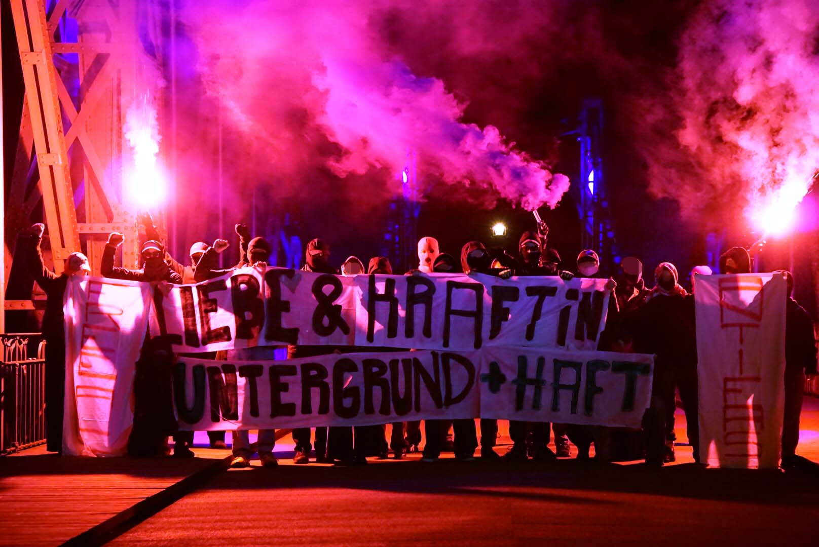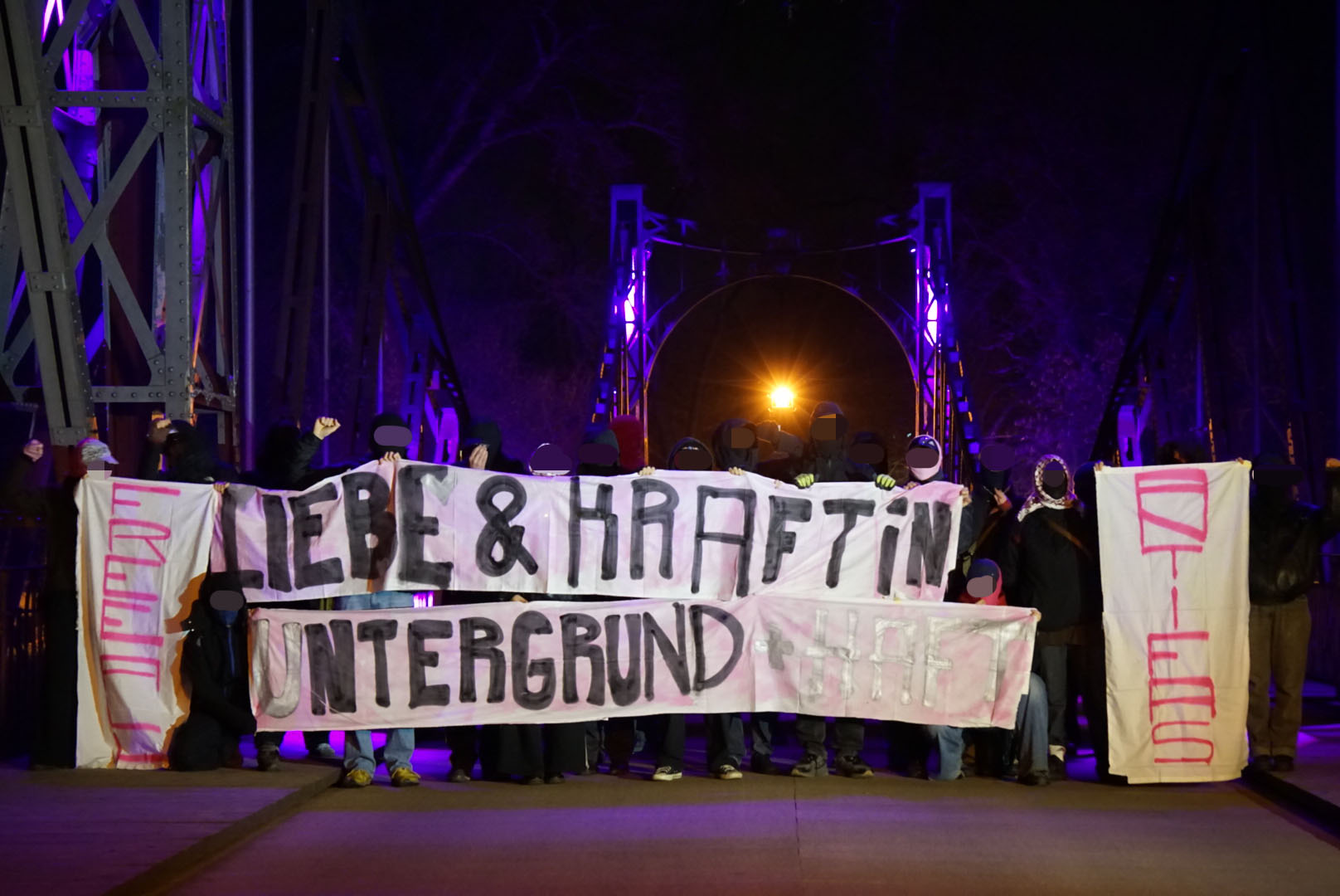Diese Bilder sind ein Zeichen unserer ungebrochenen Solidarität, für all jene, die im Untergrund leben müssen, für all jene, die eingesperrt sind, für all jene, die jeden Tag das Risiko tragen, für eine bessere Welt alles zu verlieren. Ihr seid nicht vergessen. Wir stehen hinter euch drinnen wie draußen.