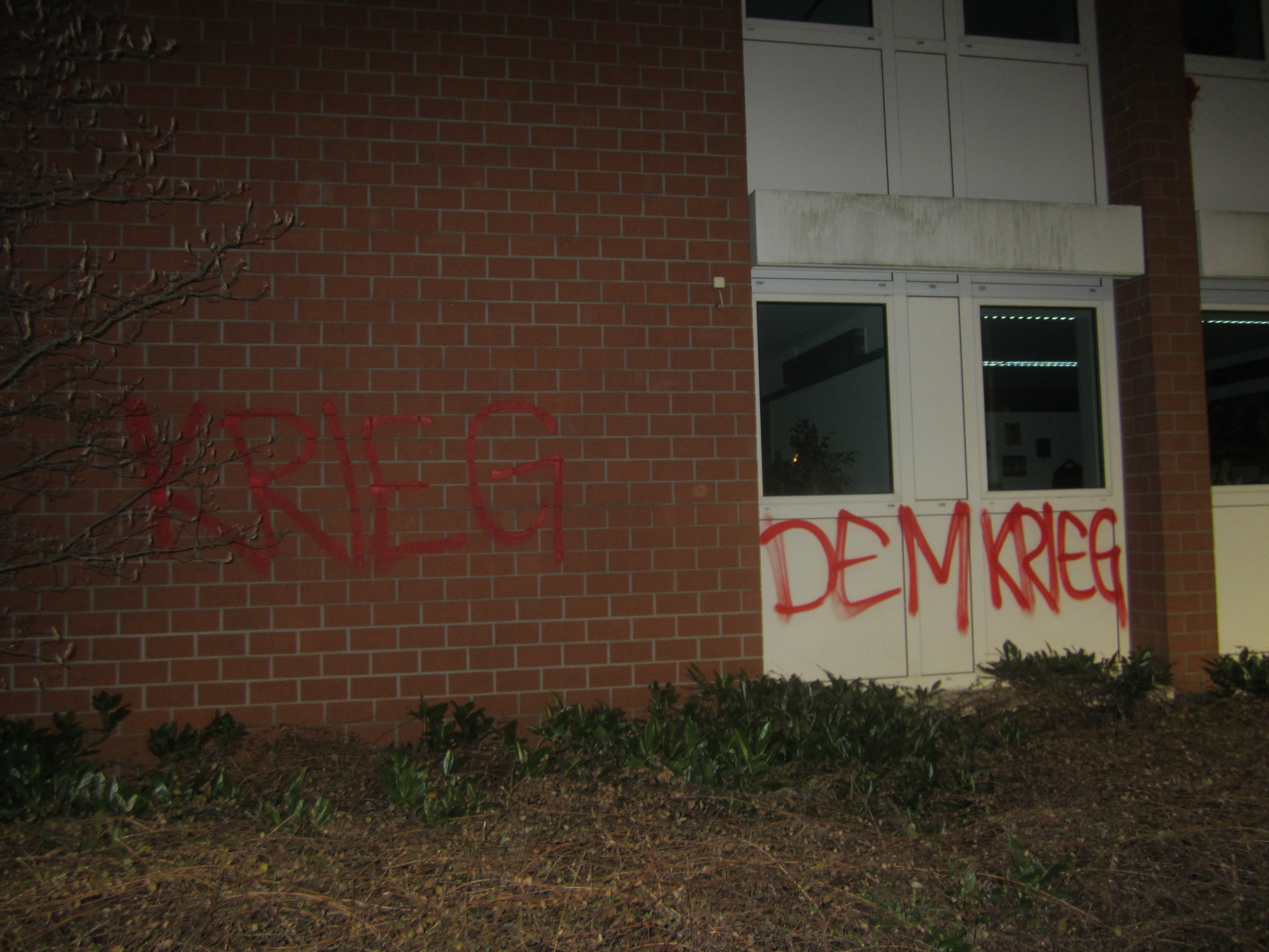 In der Nacht von Dienstag auf Mittwoch haben Kommunist:innen das "Karriere"center der Bundeswehr in der Nürnberger Südstadt markiert.