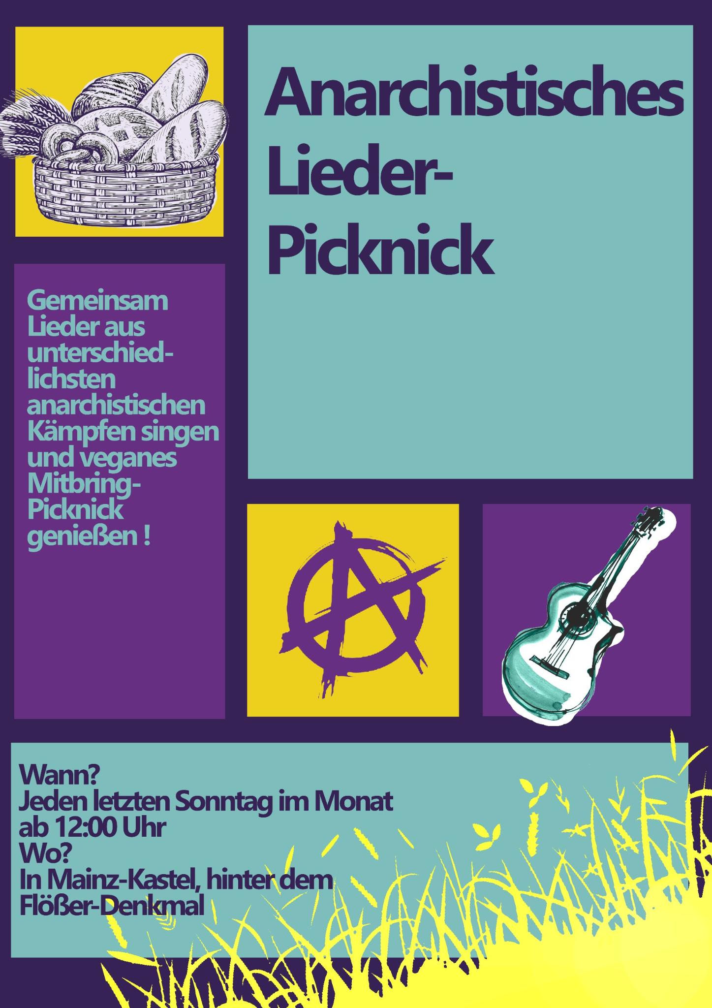 Ab dem 26.04 findet jeden letzten Sonntag im Monat ein anarchistisches Rheinpicknick in Mainz-Kastel statt, beginnend mit einem Lieder Picknick bei dem es um Liedgut vergangener Kämpfe gehen wird.